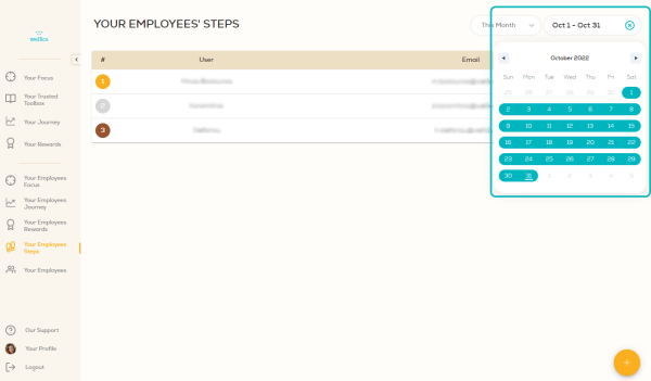 No matter how you run your workplace step challenge, the key is to make it your own. With Wellics' employee wellness platform, you can launch your own workplace wellness challenges, set custom metrics, and watch the trend. Step-tracking is a core metric tracked in each employee's wellness journey. With a wide range of wearable device integrations, the Wellics platform syncs with employee fitness trackers, logging daily step counts to make workplace step challenges easy and streamlined.